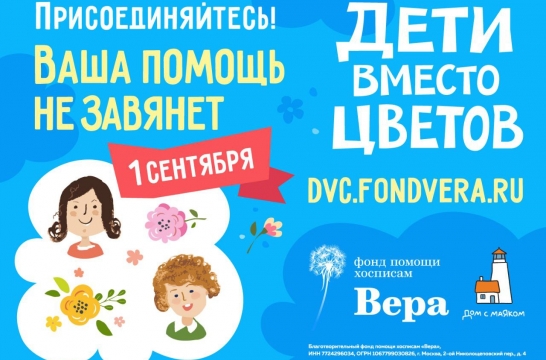 Фонд помощи хосписам «Вера» и детский хоспис «Дом с маяком» в 11-й раз проводят акцию «Дети вместо цветов», благодаря которой помощь получили более 11 тысяч семей с тяжелобольными детьми и молодыми взрослыми. В 2024 году к ней присоединились школы из 1 248 населенных пунктов, а общий сбор составил более 96 миллионов рублей – это рекорд за все время существования акции.